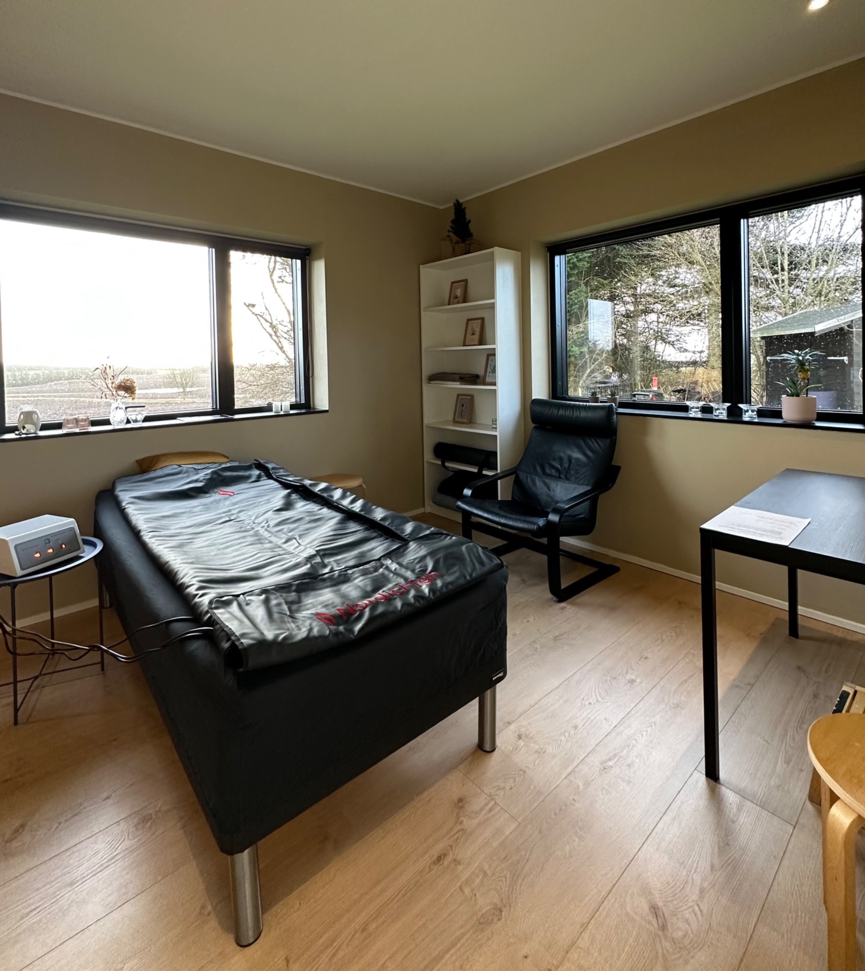 Behandlingen udføres i et særskilt, stille rum, hvor du ligger uforstyrret og kan mærke varmen arbejde blidt indefra.